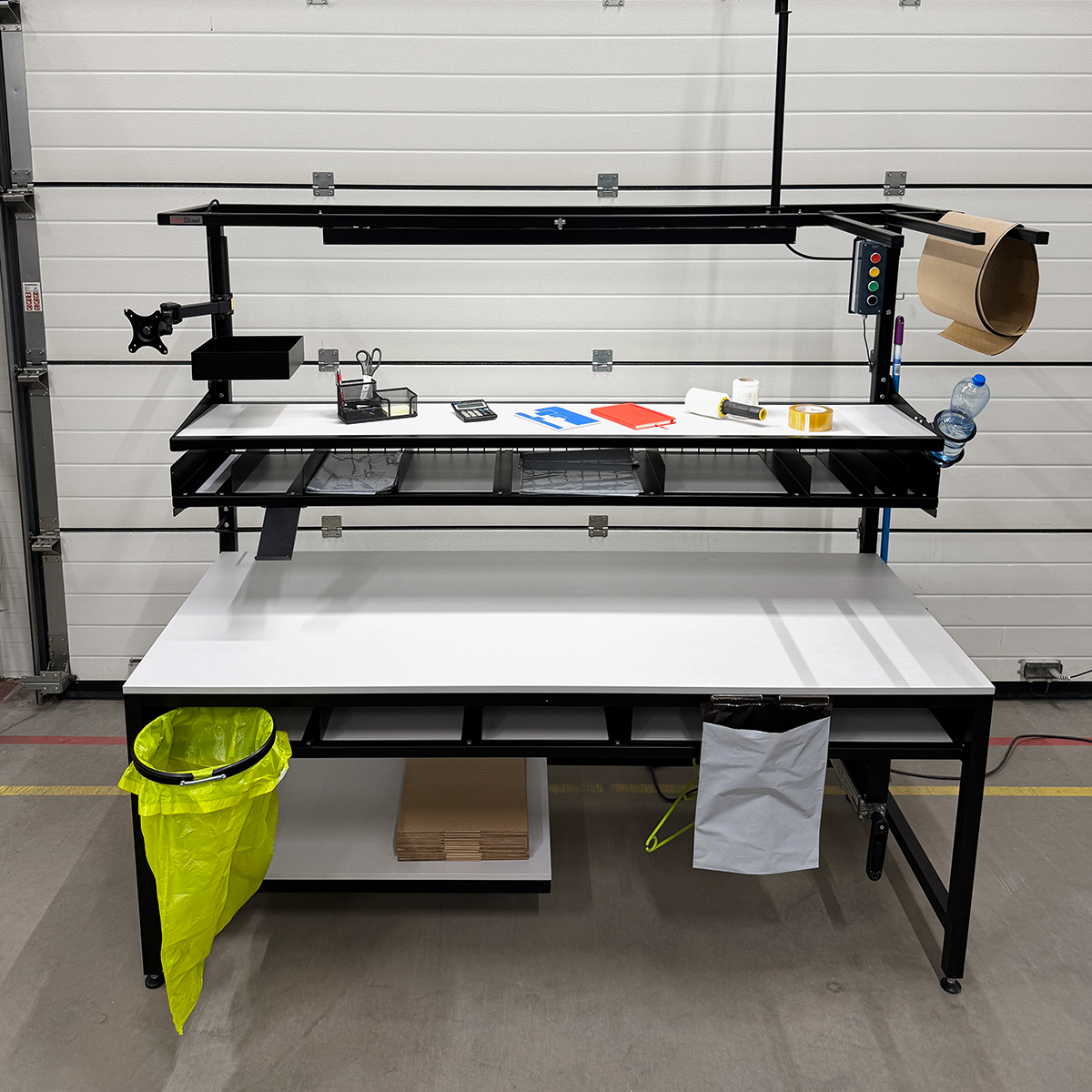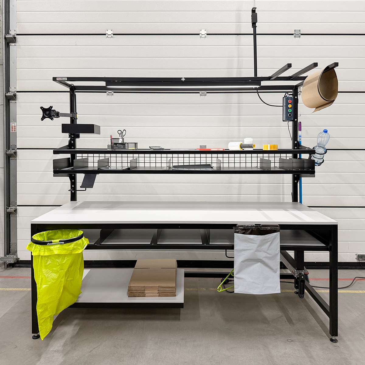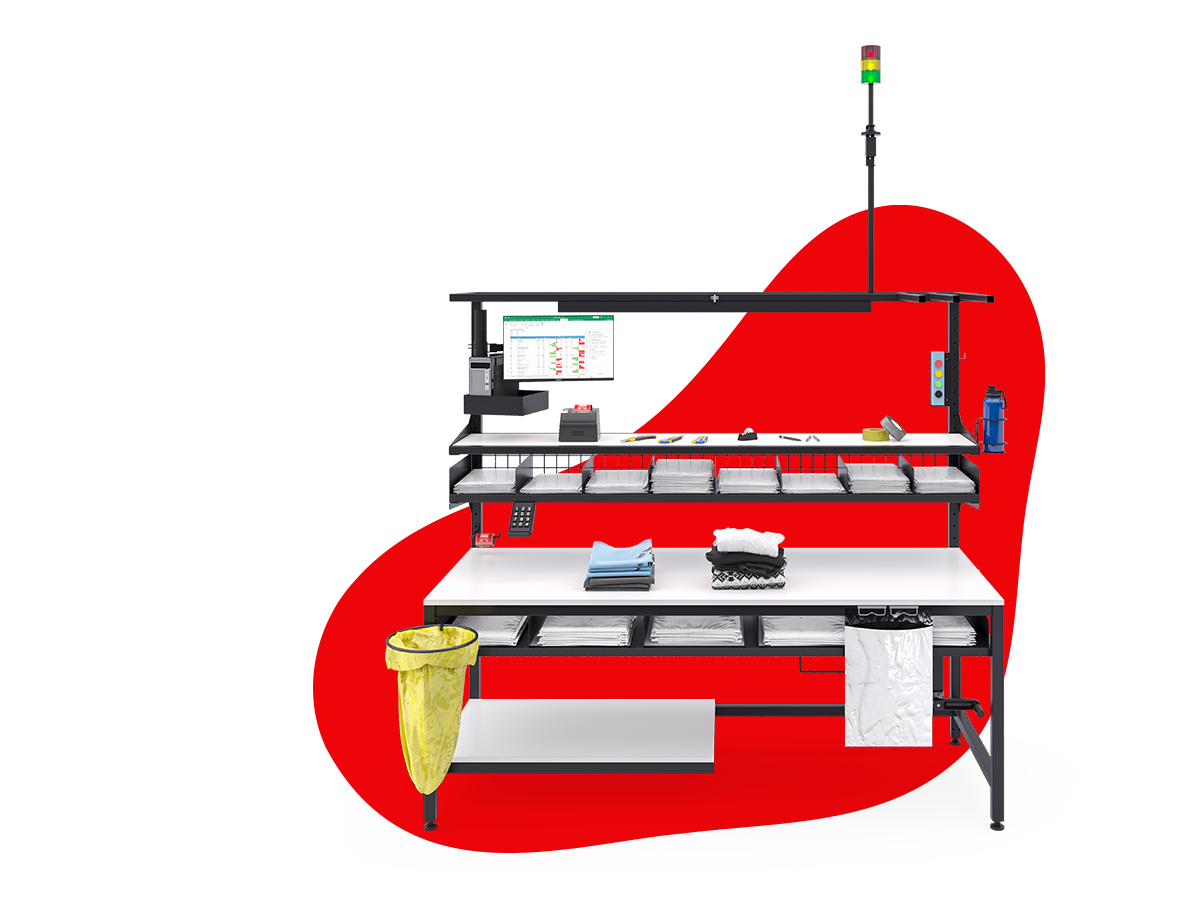 Dlatego firma zwróciła się do nas z zapytaniem na 216 stołów do pakowania, których celem było zapewnienie większej i ergonomicznej przestrzeni roboczej. Kluczowe było zachowanie maksymalnego porządku zarówno w kontekście odpadów (kartonów, folii i wypełnień z przesyłek zwrotnych), jak i pobierania nowych foliopaków oraz korzystania z wielu akcesoriów i sprzętu komputerowego podczas pracy.