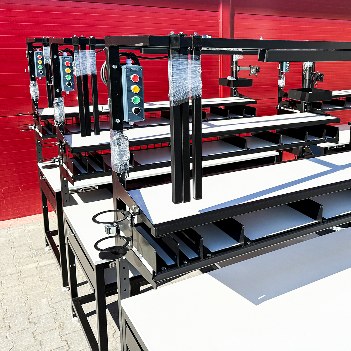 Nasz klient oczekiwał 100% dopasowania do procesu wraz z rozwiązaniem istniejących problemów operacyjnych. Standardowe rozwiązania dostępne na rynku nie spełniały tych wymagań. Istotny był również czas dostaw, który był z góry wyznaczony po to, aby nie zaburzać ciągłości pracy magazynu. Dlatego już po dwóch dniach od zapytania przeprowadziliśmy audyt potrzeb, a po kolejnych czterech dostarczyliśmy wstępny projekt. Pierwsze stoły wyjechały od nas do klienta po 35 dniach roboczych od złożenia zamówienia.